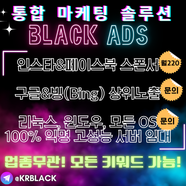 업종불문 페이스북 마케팅, 인스타그램 마케팅, 구글 SEO,찌라시 실행전문 국내 광고 1번 블랙애드입니다!