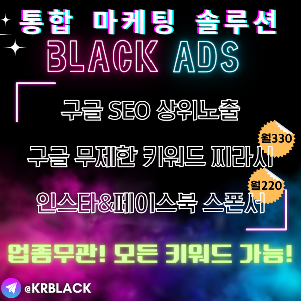 스폰서광고 1등 실행 모든 업종 관계없이 인스타 광고, 페이스북 마케팅, 구글 상위노출 Black Ads입니다.